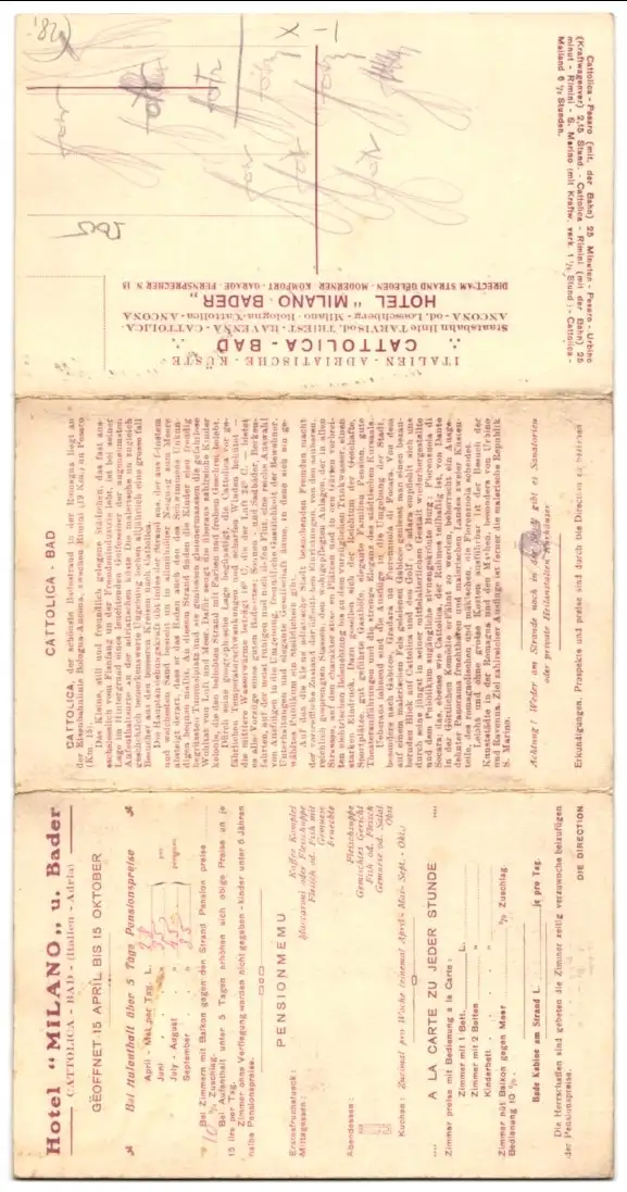 Klapp-AK Cattolica, Hotel Milano Bader, Terrasse am Meer, Viale Carducci