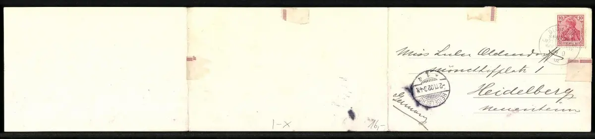 gelaufen 1902, rückseitig Klebe- und Papierreste, guter Zustand