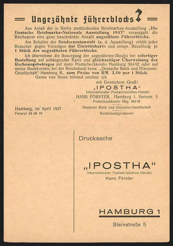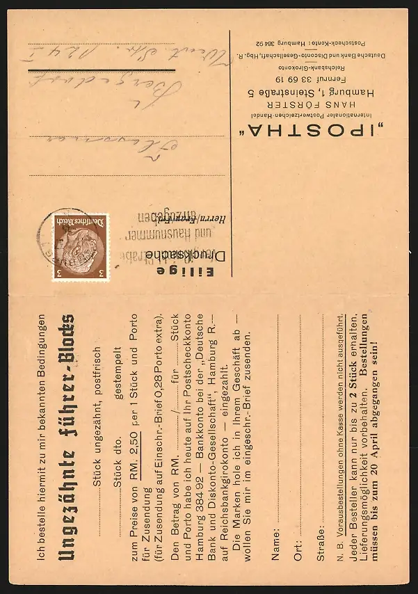 Klapp-AK Hamburg-St.Georg, Internationaler Postwertzeichen-Handel Ipostha in der Steinstrasse 5
