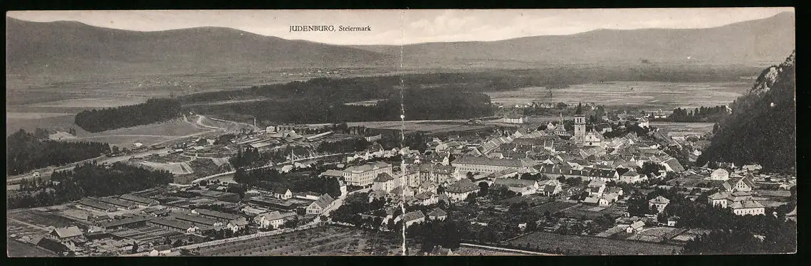 Klapp-AK Judenburg /Steiermark, Totalansicht der Stadt aus der Vogelschau