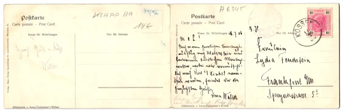 alte Ansichtskarte, gelaufen 1906, guter Zustand
