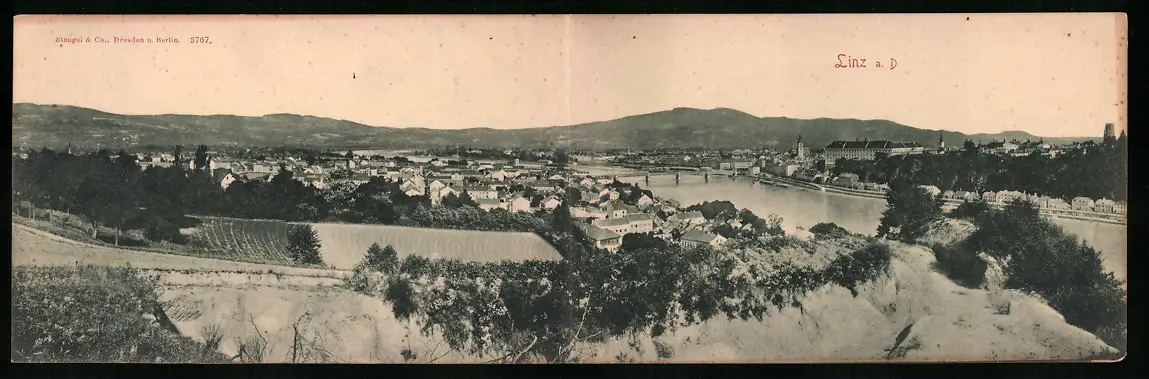 Klapp-AK Linz a. d. D., Totalansicht aus der Ferne