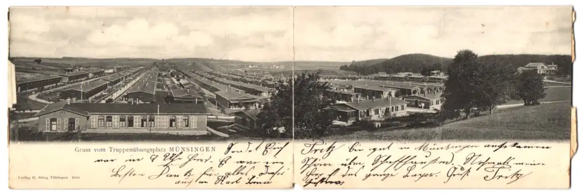 Klapp-AK Münsingen, Baracken auf dem Truppenübungsplatz