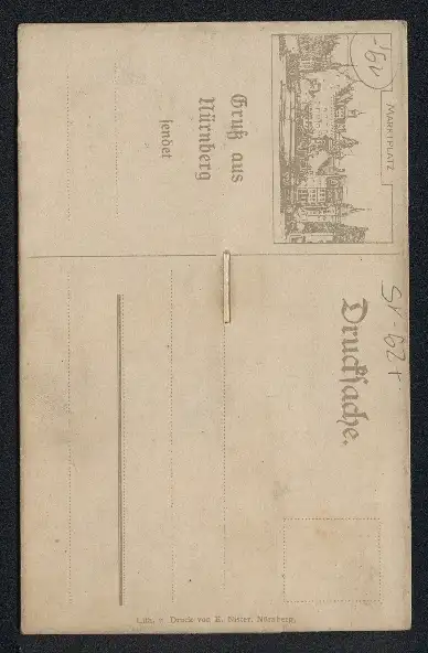 Personenbezogene Daten auf der Rückseite der Karte wurden durch blauen Textmarker unkenntlich gemacht. Die blauen Stellen sind auf die Vorderseite durchgeweicht und wirken sich negativ auf das Postkartenfoto aus
