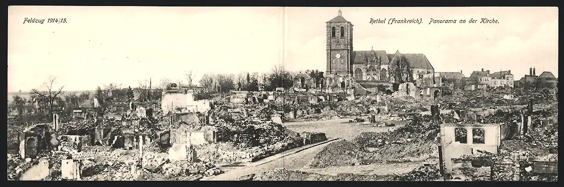 Klapp-AK Rethel, Panorama an der Kirche, Feldzug 1914 /15