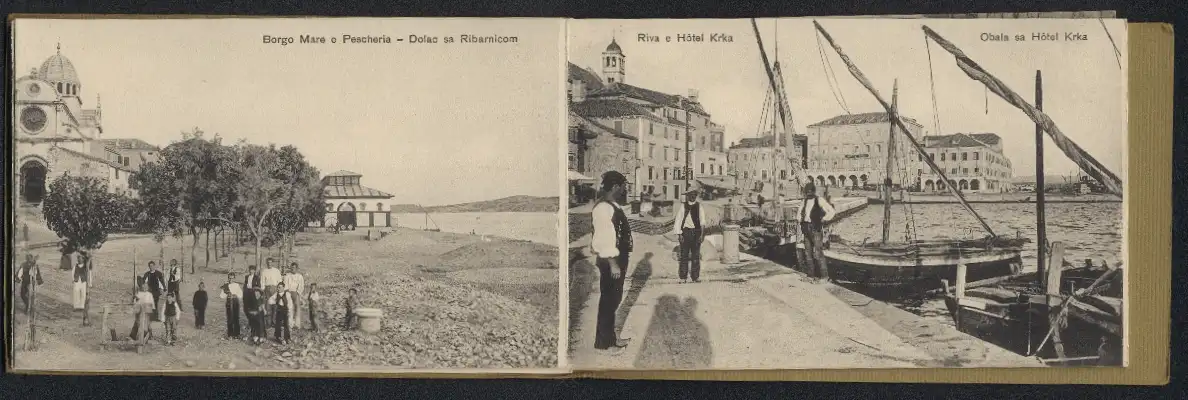Klapp-AK Sebenico, Mula, Spomenik Tommaso, Mandric, Obala sa Hôtel Krka, C. k. Okruzni Sud, Dolac sa Ribarnicom