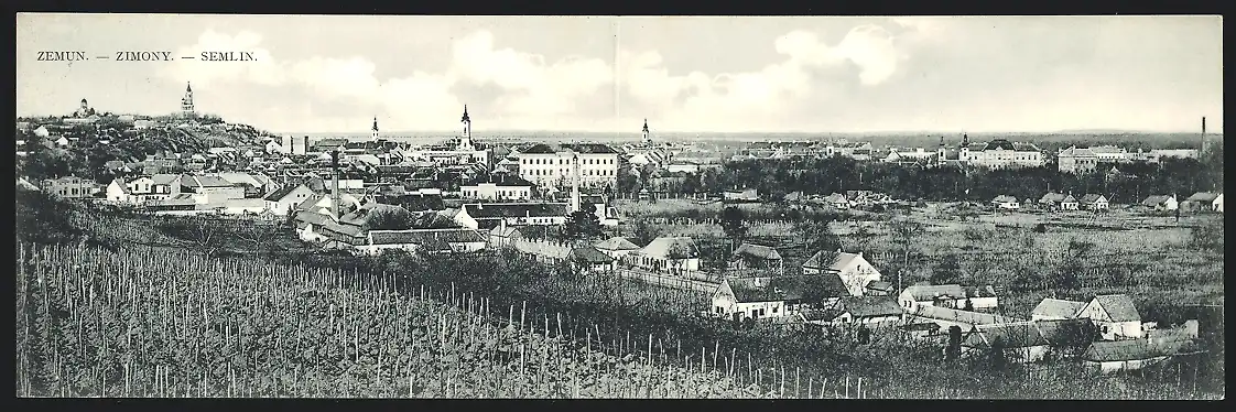 Klapp-AK Semlin, Totalansicht vom Feld aus