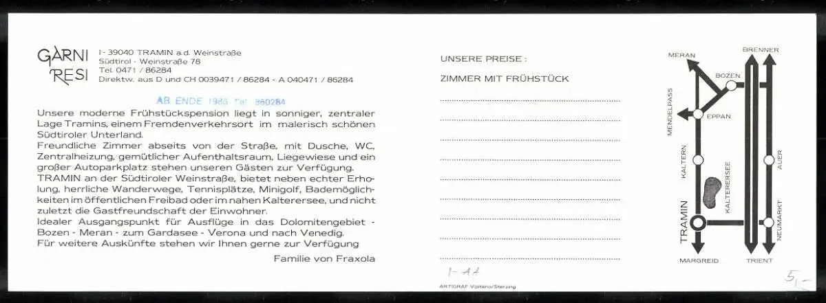 Klapp-AK Tramin a. d. Weinstrasse, Gasthof Garni Resi in der Weinstrasse 78