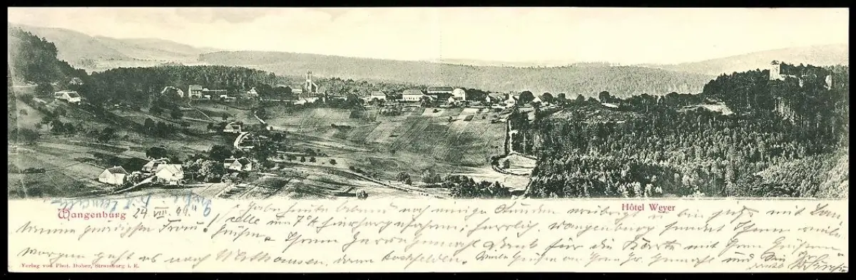 Klapp-AK Wangenburg, Panorama mit Hotel Weyer