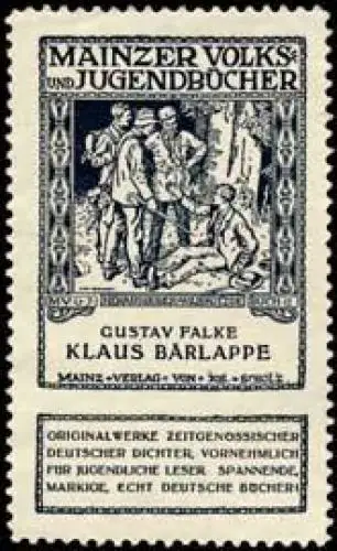 Gustav Falke, Herausgeber: Wilhelm Kotzde, Reihe: Mainzer Volks- und Jugendbücher, Größe/Zustand: 6x3 , guter Zustand, Original alte Reklamemarke die seinerzeit für die Werbung benutzt wurde