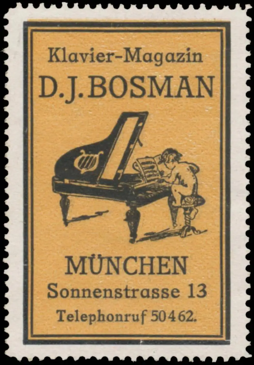 Kind spielt Klavier, Sonnenstraße 13, Größe/Zustand: 5x4 , guter Zustand, Original alte Reklamemarke die seinerzeit für die Werbung benutzt wurde