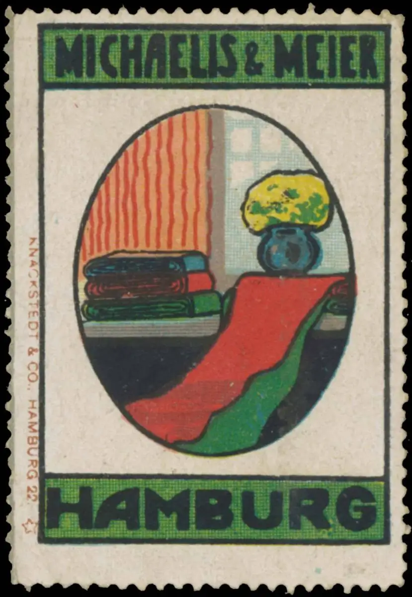 Bekleidung, Stoffe, Druck: Knackstedt & Co. Hamburg, Größe/Zustand: 5x4 , Fehldruck, guter Zustand, Original alte Reklamemarke die seinerzeit für die Werbung benutzt wurde