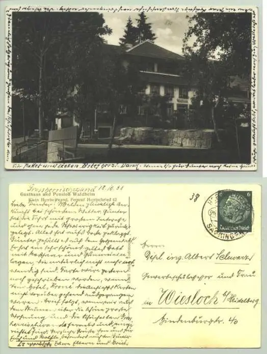 Artikelbeschreibung u. Zustand : Siehe Scan. Weitere Infos : Ansichtskarte. Klein Herrischwand - Gasthaus Waldheim. PLZ-Bereich pauschal 79737. Postalisch gelaufen 1938