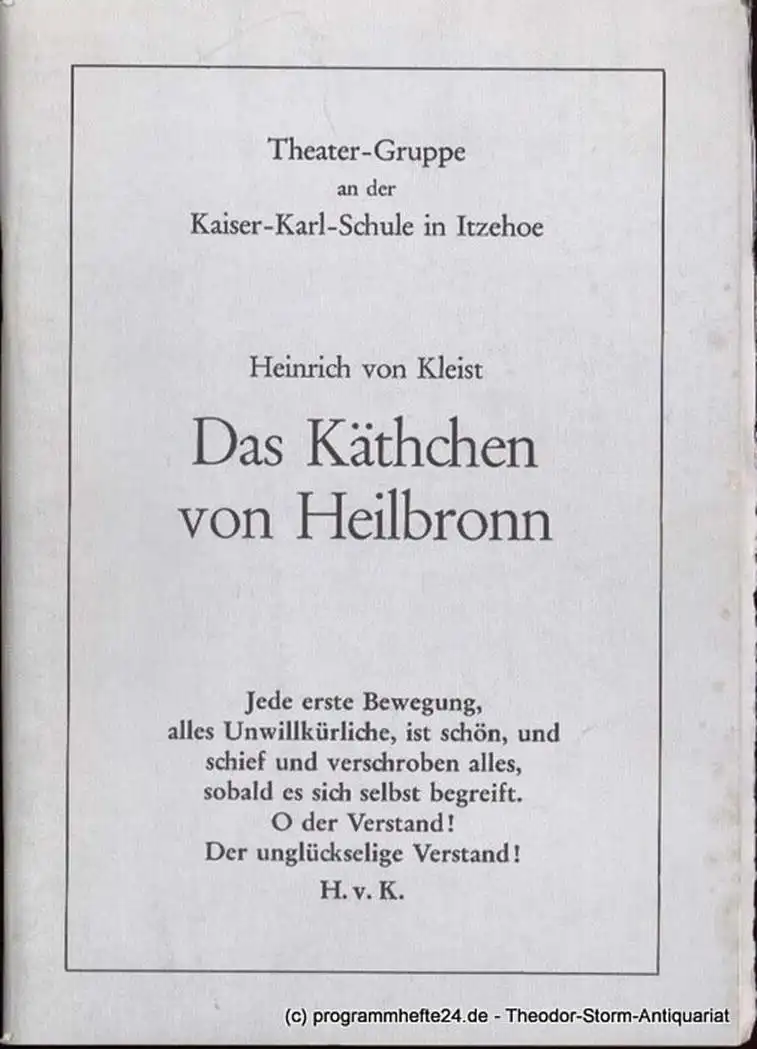 Kleist Heinrich von: Das Käthchen von Heilbronn Programmheft Theater-Gruppe an der Kaiser-Karl-Schule in Itzehoe.