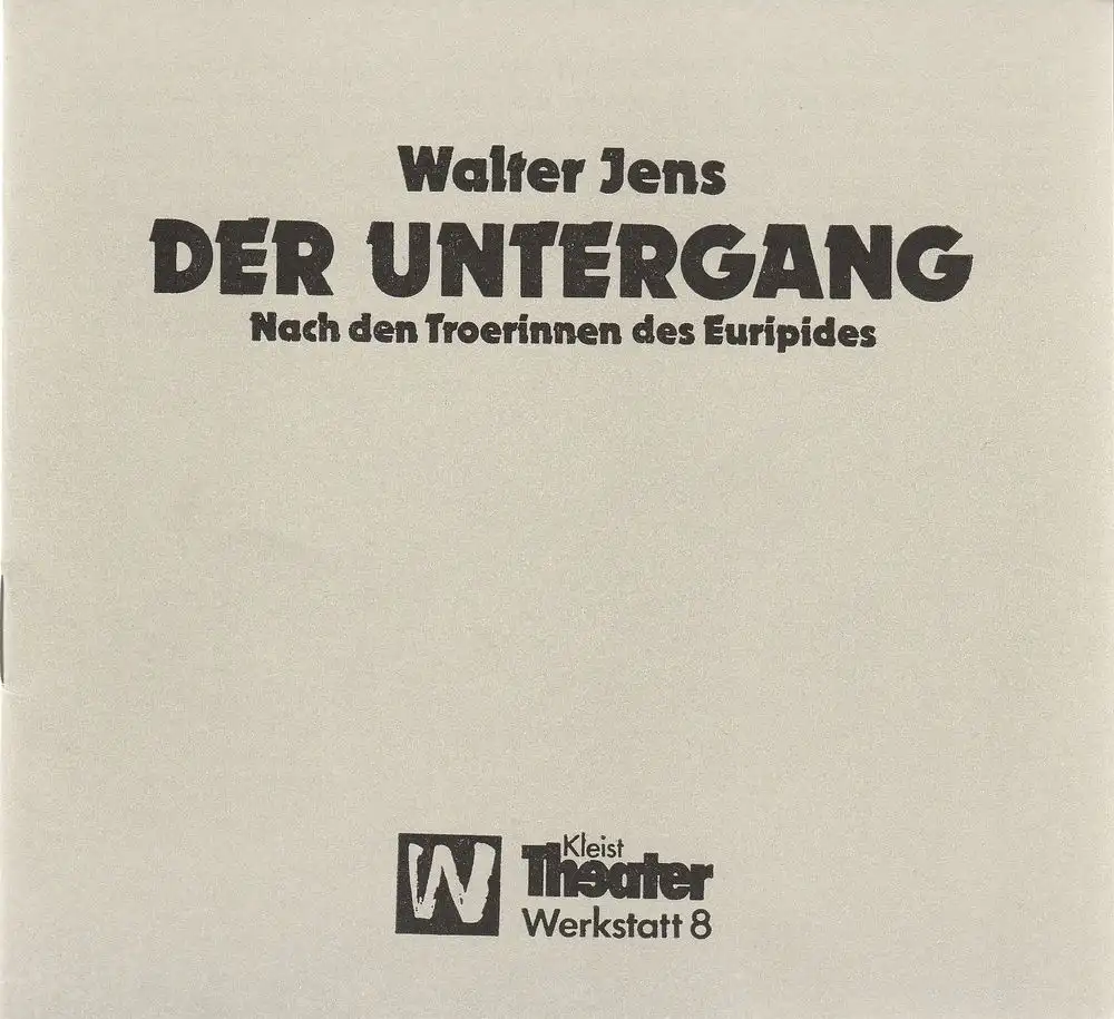 Nach den Troerinnen des Euripides. Regie: Horst Lebinsky. Musik: Ulli Sachse. Mitwirkende: Hans-Joachim Rodig, Monika Dortschy, Klaus Birkefeld, Gitta Schweighöfer, Sabine Steglich, u. a. - Theaterprogramm, Opernprogramm, Ballettprogramm, Musicalprogramm, Konzertprogramm, Theatermemorabilia, Programmhefte Sammlung, deutsche Theatergeschichte.
