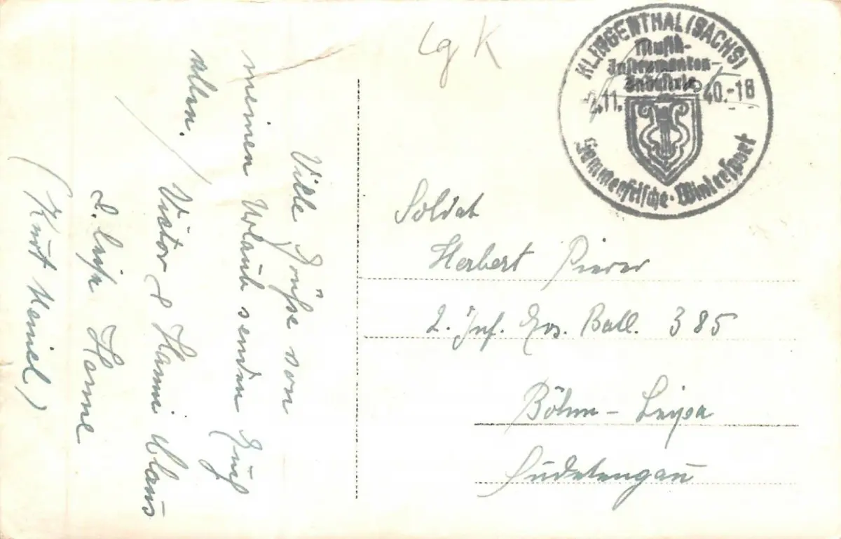 Rückseite: gelaufen 1940 von Klingenthal (Sachs.)