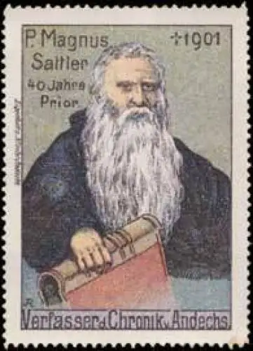 P. Magnus Sattler 40 Jahre Prior, Verfasser der Chronik Andechs, 1901, Größe/Zustand: 6x4 , guter Zustand, Original alte Reklamemarke die seinerzeit für die Werbung benutzt wurde