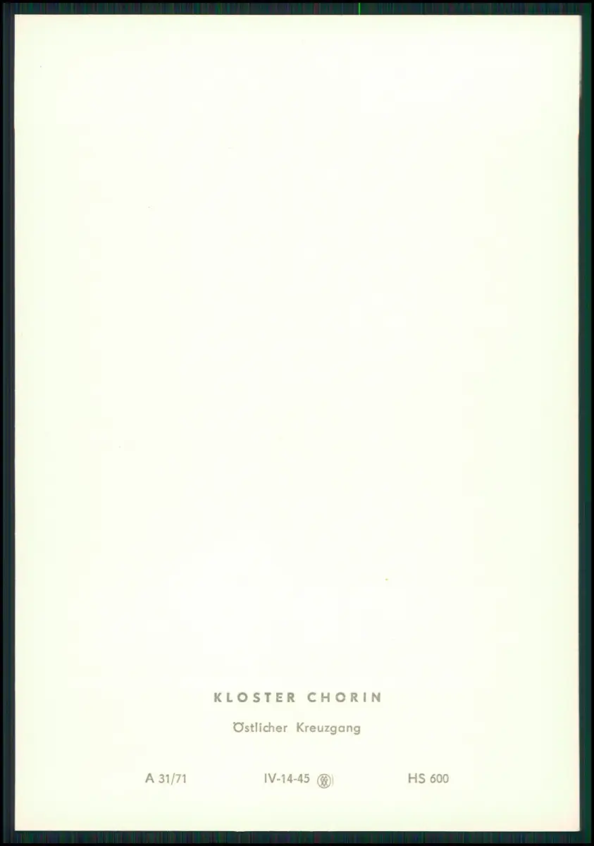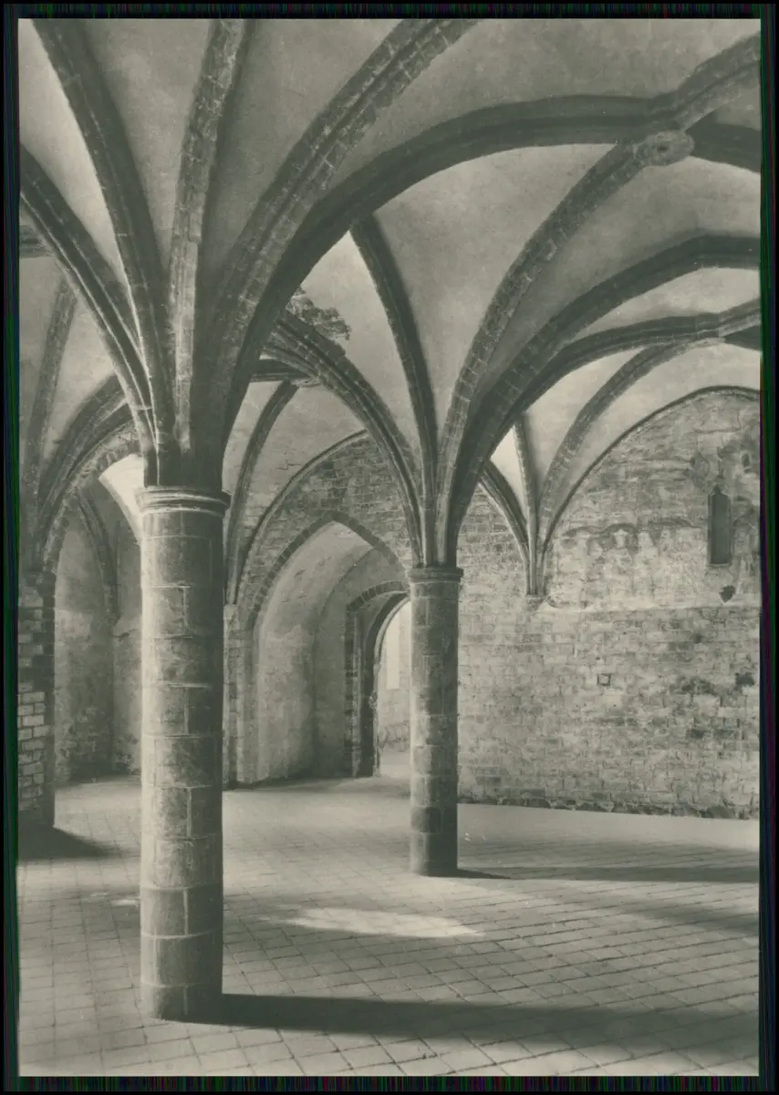 Kloster Chorin DDR Mappe 1971 Fotos Klaus G. Beyer Leipzig Prof. Dr. Johannes Jahn 15x10 cm Beschreibung: Motivübersicht: Westfassade der Klosterkirche Inneres der Klosterkirche nach Osten Südseite der Klosterkirche mit Querschiff und Kreuzgängen Östlicher Kreuzgang Westfront des Pfortenhauses und Nordfront des Brauhauses Der Fürstensaal Küchen- und Brauhaus von Süden Klosterküche Das Kloster Chorin im Land Brandenburg zählt zu den bedeutendsten Bauwerken der norddeutschen Backsteingotik Es wurde im 13. Jahrhundert von Zisterziensermönchen gegründet und gilt als wichtiges Zeugnis mittelalterlicher Baukunst. Rückseite: Originale Verlagsangaben, Preisaufdruck (3 Mark DDR) und Seriennummer.