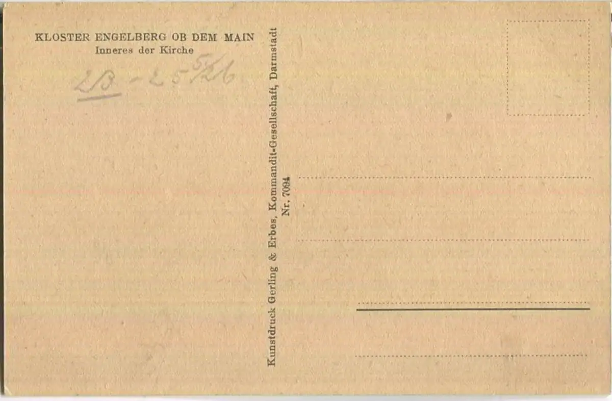 Kloster Engelberg ob dem Main - Inneres der Kirche - Verlag Gerling & Erbes KG Darmstadt 20er Jahre