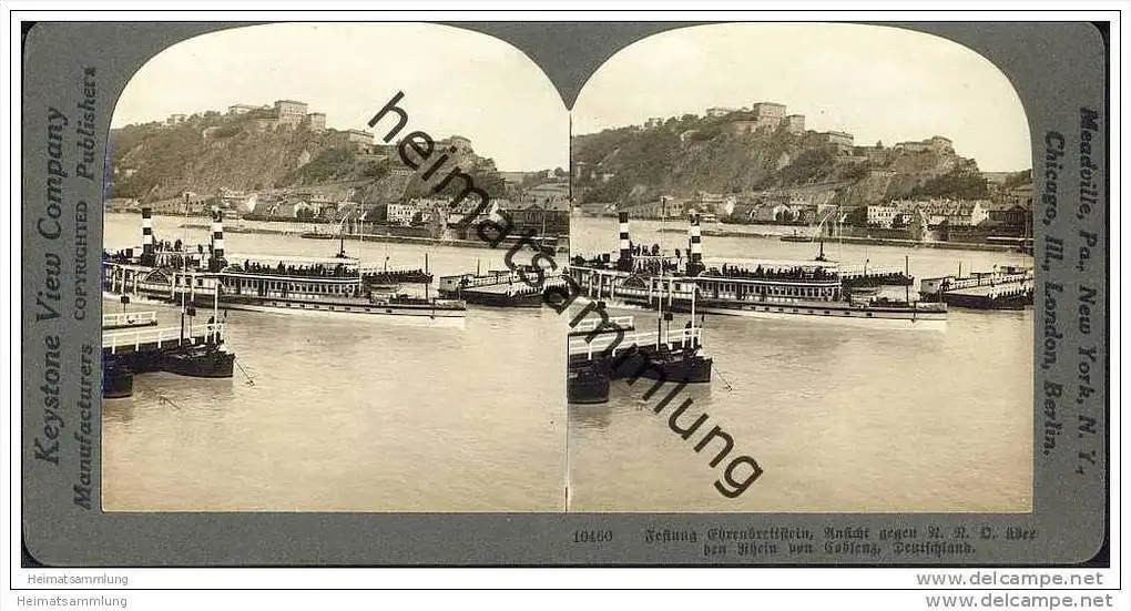 Koblenz - Rheinschiff - Keystone View Company - Stereofotographie - Grösse ca. 17,8 x 8,7cm - Gewicht 18g - Rückseite blank - keine Postkarte (ST038) *
