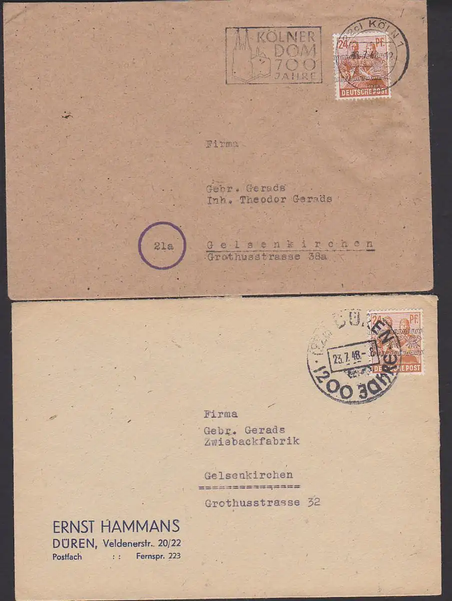 Köln, Düren zwei Stempel zu Jubiläen Kölner Dom 700 Jahre, 1200 Jahre Düren (dc29853)