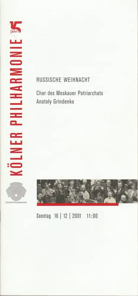Titel: Programmheft RUSSISCHE WEIHNACHT CHOR DES MOSKAUER PATRIARCHATS ANATOLY GRINDENKO 16. Dezember 2001 Kölner Philharmonie