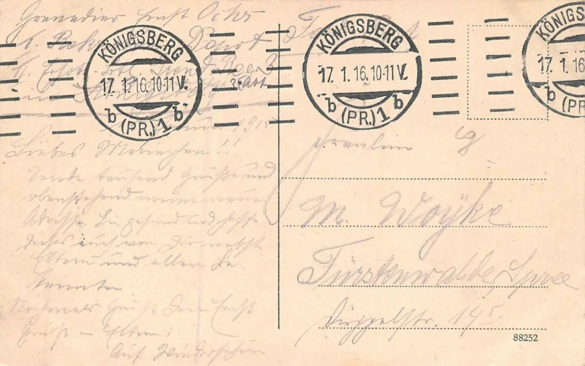 Rückseite: gelaufen 1916 von Königsberg (Pr.)