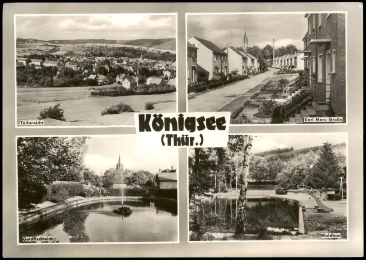 Königsee DDR Mehrbild-AK mit Teilansicht Goldfischteich Karl-Marx-Straße 1965