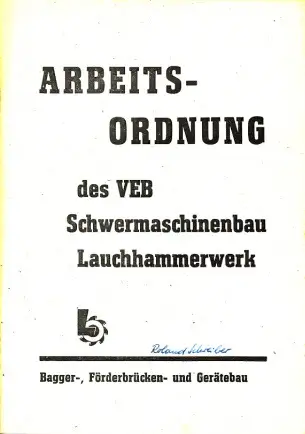 Arbeitsordnung des VEB Schwermaschinenbau Lauchhammerwerk - Organisations-Anweisung: OA 210. 0/78 Gültig ab: 01. 01. 78