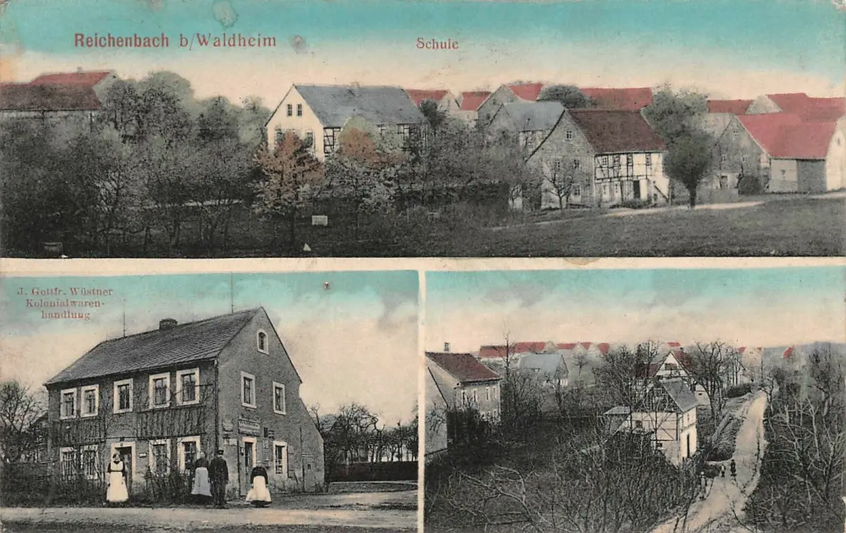 Kolonialwarenhandlung und Schule Reichenbach bei Waldheim Sachsen AK 1913