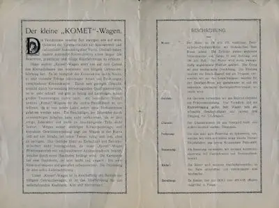 Komet Kleinwagen 4/12 PS Prospekt 1922-1924