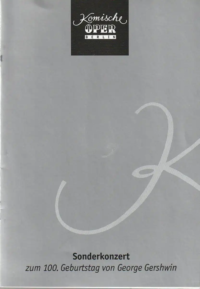Titel: Programmheft SONDERKONZERT DES ORCHESTERS DER KOMISCHEN ZUM 100. GEBURTSTAG VON GEORGE GERSHWIN 26. September 1998 Spielzeit 1998 / 99