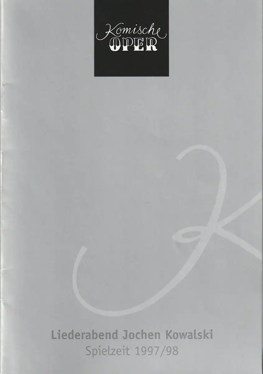 Komische Oper Berlin, Albert Kost, Hans-Jochen Genzel: Programmheft LIEDERABEND JOCHEN KOWALSKI LIEDER AUS DEUTSCHLAND 12.September 1997 Komische Oper Spielzeit 1997 / 98 47. Berliner Festwochen.