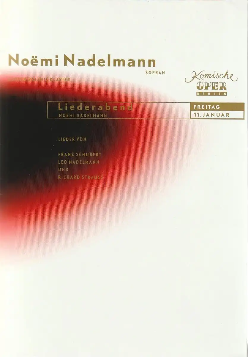 Komische Oper Berlin, Albert Kost, Sabine Kluth: Programmheft LIEDERABEND NOEMI NADELMANN 11. Januar 2002 Spielzeit 2001 / 2002.