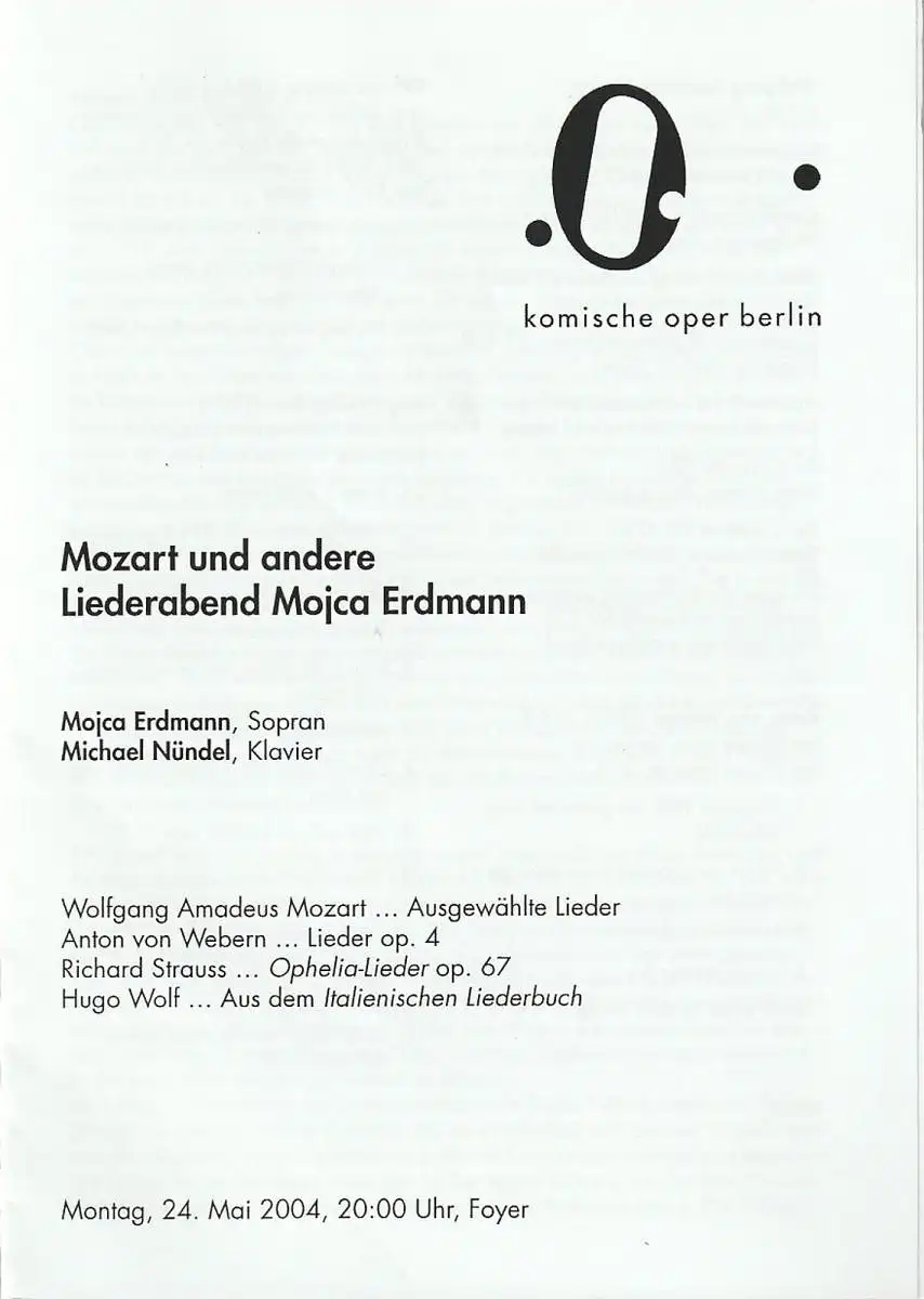 Titel: Programmheft MOZART UND ANDERE LIEDERABEND MOJCA ERDMANN 24. Mai 2004 Foyer Komische Oper Spielzeit 2003 / 2004