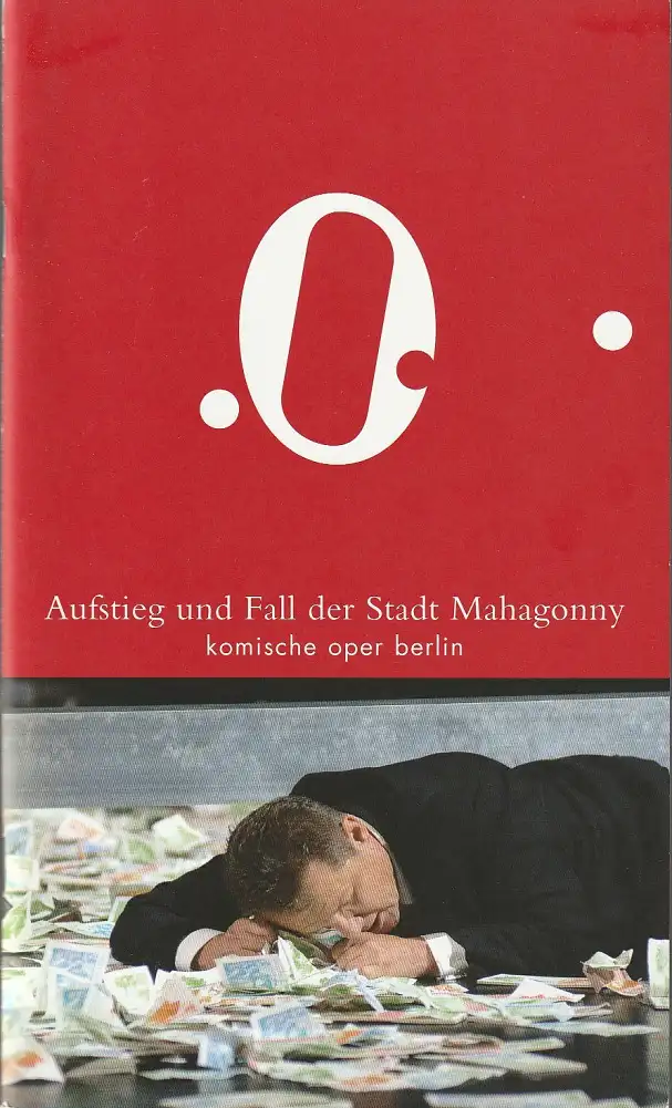 Oper in drei Akten mit großem Orchester von Kurt Weill. Text von Bertolt Brecht. Inszenierung: Andreas Homoki. Bühne: Hartmut Meyer. Kostüme: Mechthild Seipel. Mitwirkende gemäß Probenfotos: Kor-Jan Dusseljee, Carsten Sabrowski, Christoph Späth, Christiane Oertel, Jens Larsen, Martin Winkler, Tatjana Gazdik, Thomas Ebenstein - Theaterprogramm, Opernprogramm, Ballettprogramm, Musicalprogramm, Konzertprogramm, Theatermemorabilia, Programmhefte Sammlung, deutsche Theatergeschichte.