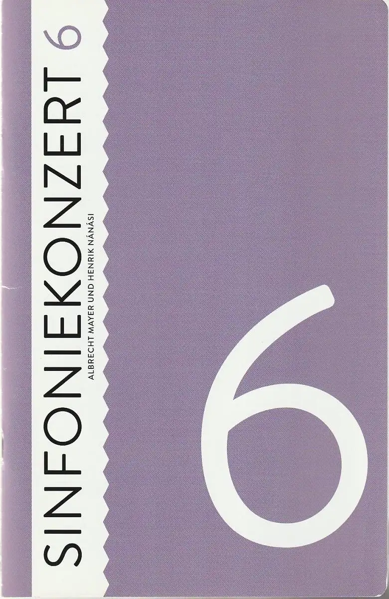 Dirigent: Henrik Nanasi. Solist: Albrecht Mayer, Oboe. Programm: Zoltan Kodaly: Tänze aus Galantha / Alessandro Marcello: Konzert für Oboe und Orchester d-Moll / Frigyes Hidas: Konzert für Oboe und Orchester Nr. 1 / Richard Strauss: Also sprach Zarathustra op. 30 - Theaterprogramm, Opernprogramm, Ballettprogramm, Musicalprogramm, Konzertprogramm, Theatermemorabilia, Programmhefte Sammlung, deutsche Theatergeschichte.