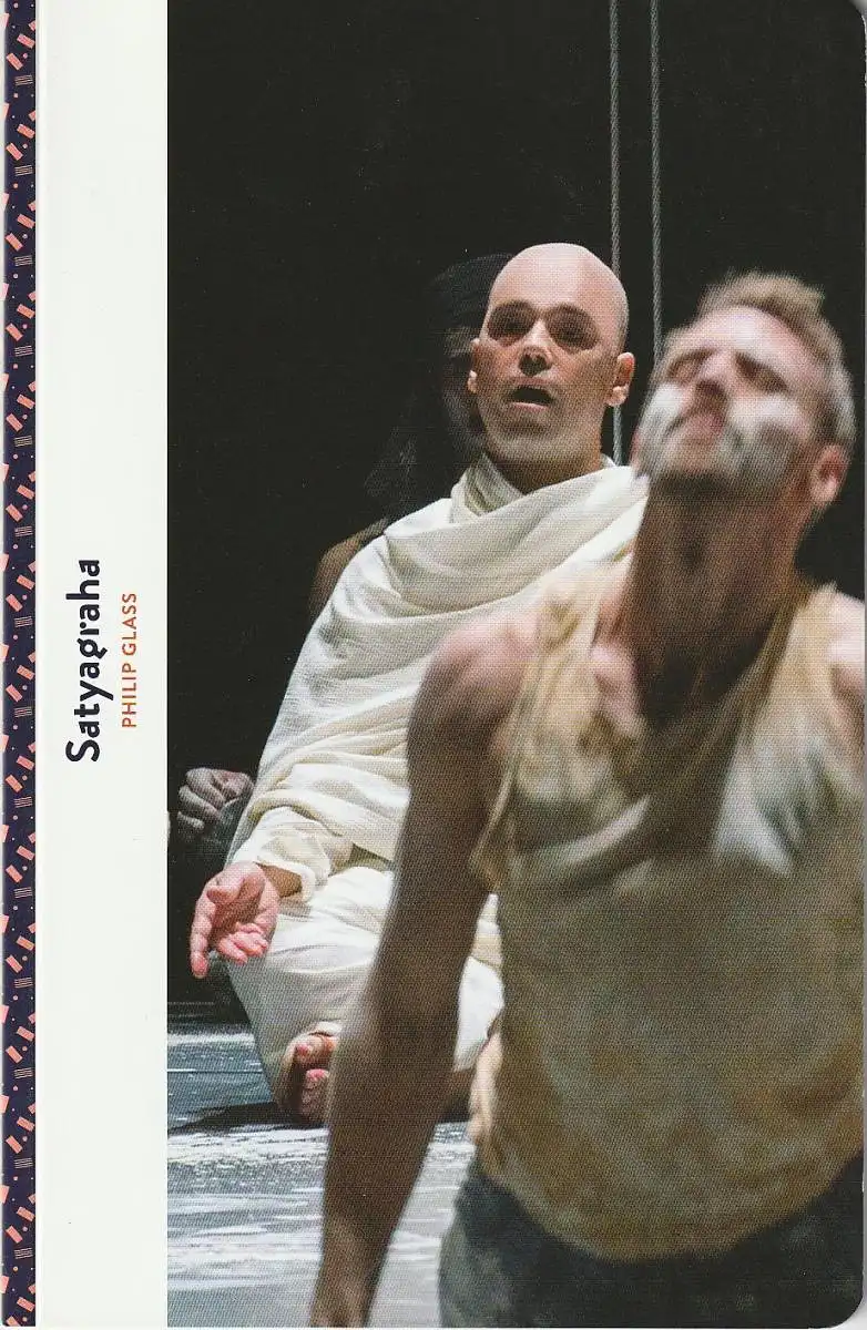 M. K. Gandhi in Südafrika. Oper in drei Akten. Koproduktion mit dem Theater Basel und der Vlaamse Opera Antwerpen. Musikalische Leitung: Jonathan Stockhammer. Inszenierung, Choreographie: Sidi Larbi Cherkaoui. Bühne: Henrik Ahr. Kostüme: Jan-Jan van Essche. Mitwirkende gemäss Probenfotos: Stefan Cifoelli, Jason Kittelberger, Kazutomi Tsuki Kozuki, Karolina Gumos, Tom Erik Lie, Cathrin Lange, Tomasz Wija, Mirka Wagner, u.a. - Theaterprogramm, Opernprogramm, Ballettprogramm, Musicalprogramm, Konzertprogramm, Theatermemorabilia, Programmhefte Sammlung, deutsche Theatergeschichte.