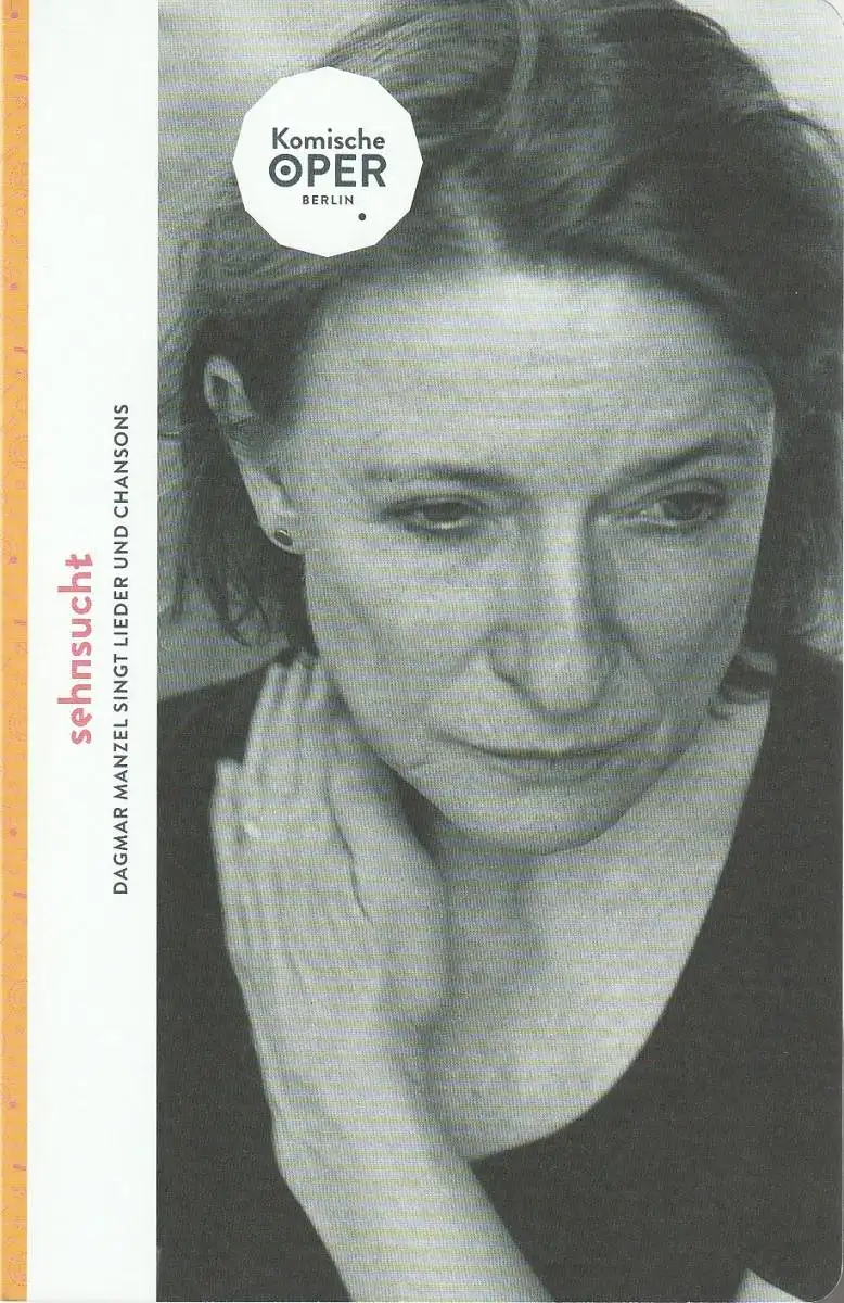 Mitwirkende: Dagmar Manzel, Gesang / Daniela Braun, Violine / Frank Schulte, Klavier / Ralf Templin, Gitarre / Felix Kroll, Akkordeon / Arnulf Ballhorn, Kontrabass. Programm: Werke von Otto Reutter, Kurt Weill, Friedrich Hollaender, Paul Abraham, Theo Mackeben, u.a. - Theaterprogramm, Opernprogramm, Ballettprogramm, Musicalprogramm, Konzertprogramm, Theatermemorabilia, Programmhefte Sammlung, deutsche Theatergeschichte.
