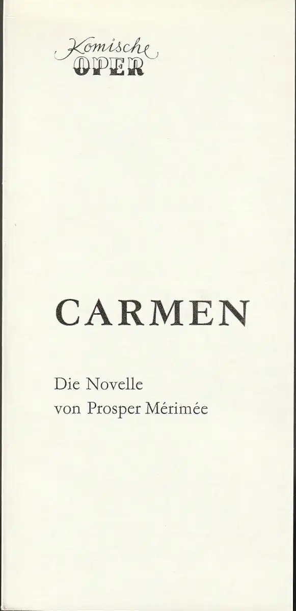Komische Oper Berlin, E. Schmidt: Programmheft CARMEN Die Novelle von Prosper Merimee 16. Juni 1991 Foyer Komische Oper Spielzeit 1990 / 91.