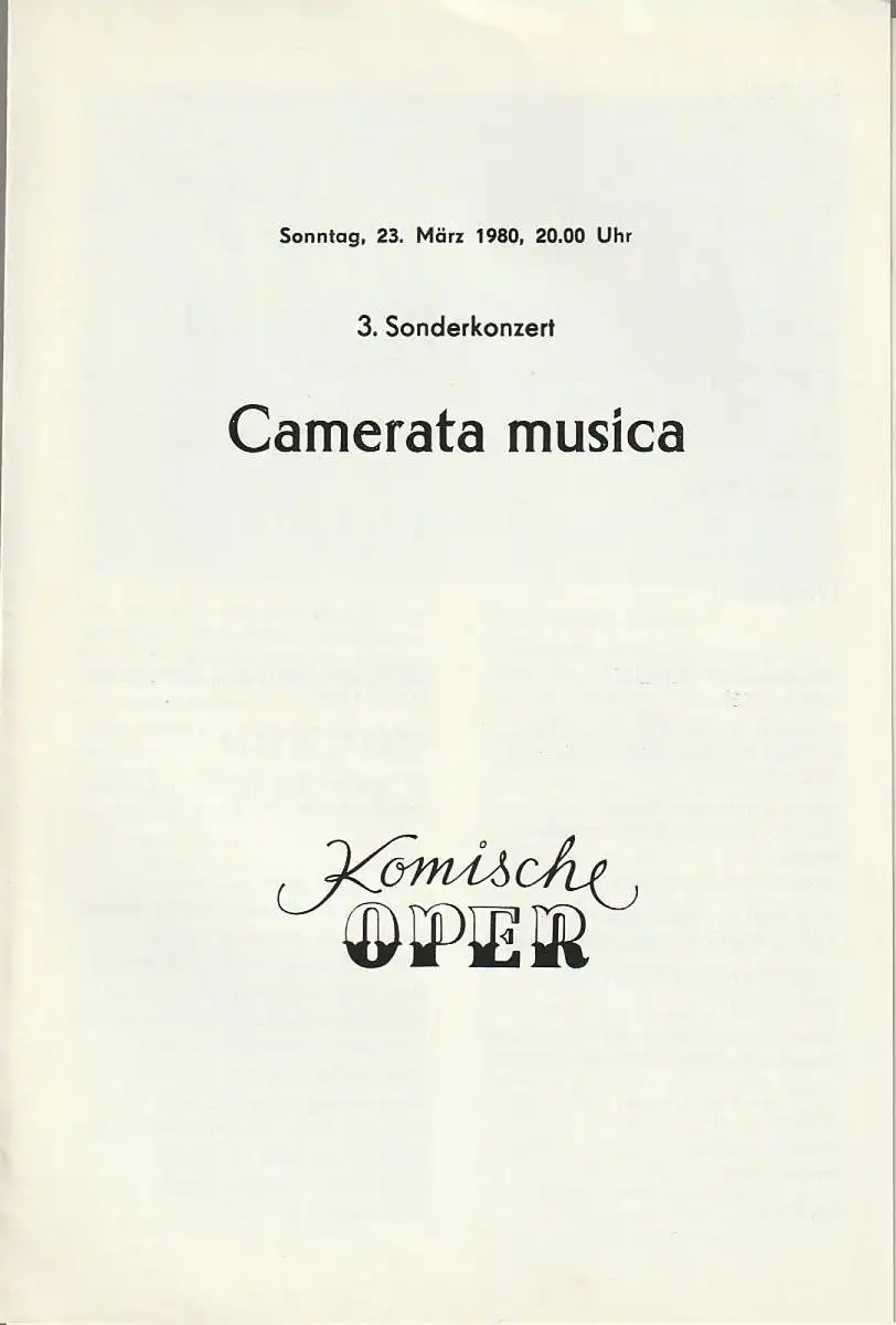 Komische Oper Berlin, Eginhard Röhlig: Programmheft 3. SONDERKONZERT CAMERATA MUSICA 23. März 1980.