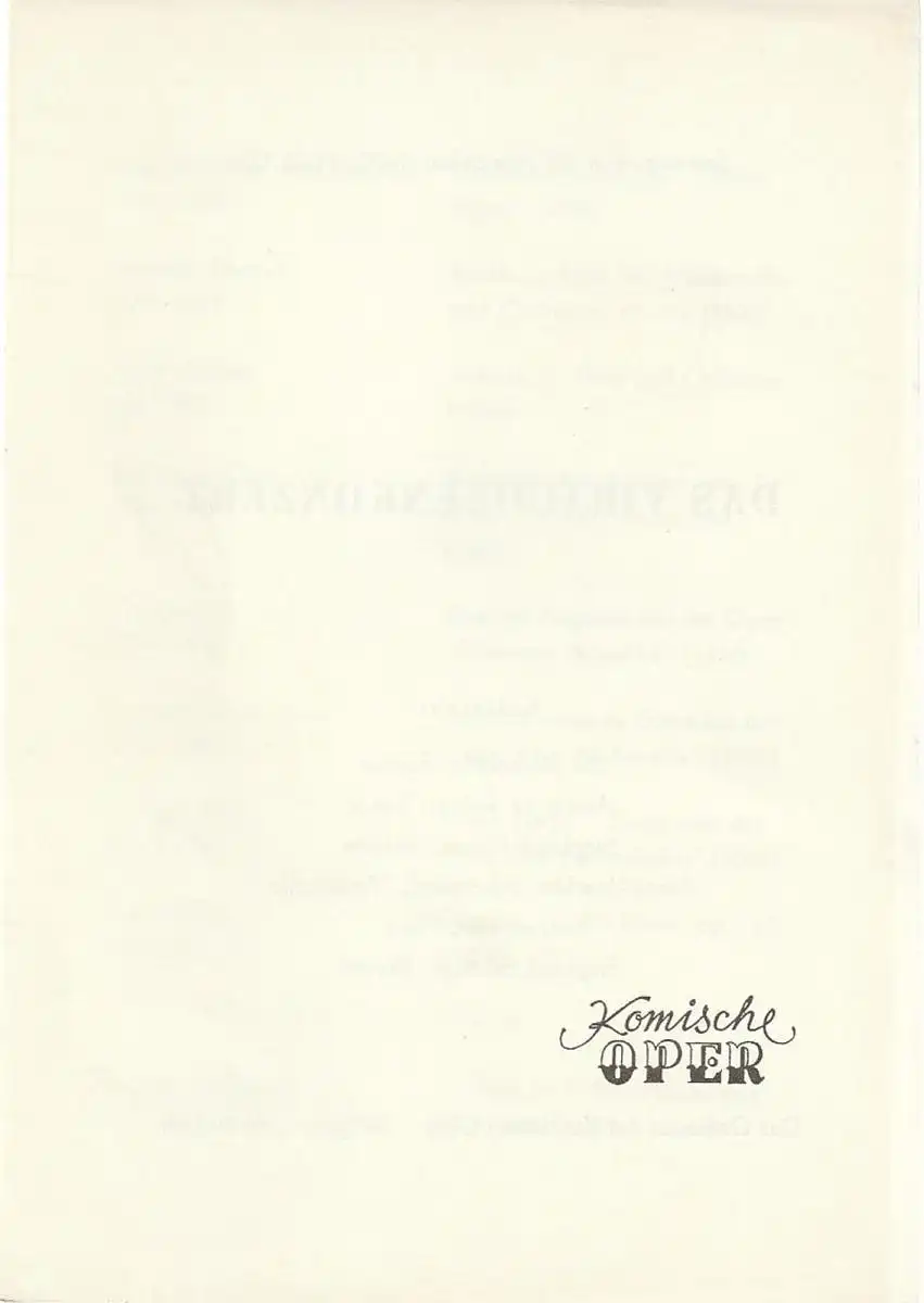 Solisten: Els Bolkestein, Sopran / Anton de Ridder, Tenor / Siegfried Lorenz, Bariton / Hans-Joachim Scheitzbach, Violoncello / Werner Tast, Flöte / Siegfried Stöckigt, Kavier. Das Ochester der Komischen Oper. Dirigent: Gert Bahner. Programm: EMIL NIKOLAUS VON REZNICEK: Ouverture zur Oper Donna Diana. ANTONIN DVORAK: Rondo g-Moll für Violoncello und Orchester op. 94. FRANK MARTIN: Ballade für Flöte und Orchester. FRANCESCO CILEA: Romanze der Adriana aus der Oper Adiana Lecouvreur. GEORGE GERSHWIN: Konzert F-Dur für Klavier und Orchester. Weitere Werke von Giacomo Puccini, Giacomo Meyerbeer, Georges Bizet und Max Butting - Theaterprogramm, Opernprogramm, Ballettprogramm, Musicalprogramm, Konzertprogramm, Theatermemorabilia, Programmhefte Sammlung, deutsche Theatergeschichte.
