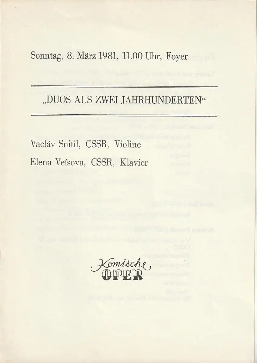 Komische Oper Berlin: Programmheft DUOS AUS ZWEI JAHRHUNDERTEN 8. März 1981 Foyer Komische Oper Spielzeit 1980 / 81.