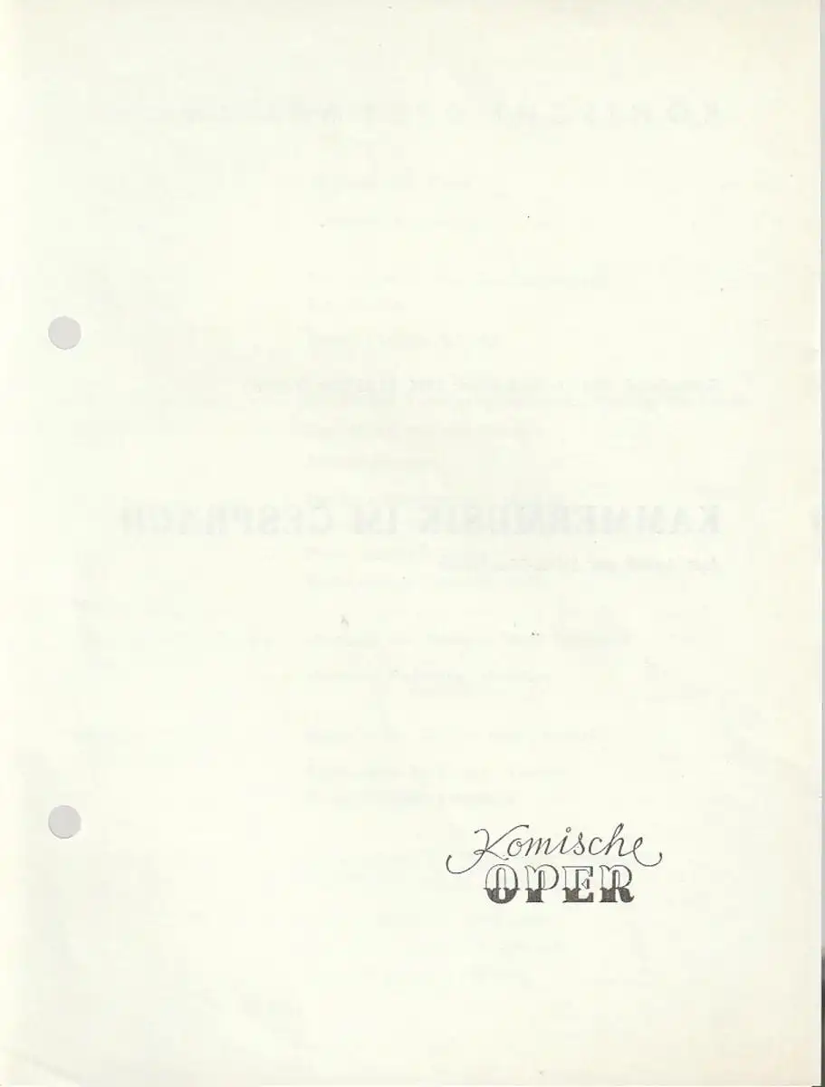 Komische Oper Berlin: Programmheft KAMMERMUSIK IM GESPRÄCH 14. September 1974 Foyer Komische Oper Spielzeit 1974 / 75 Aus Anlaß der DDR-Musiktage.