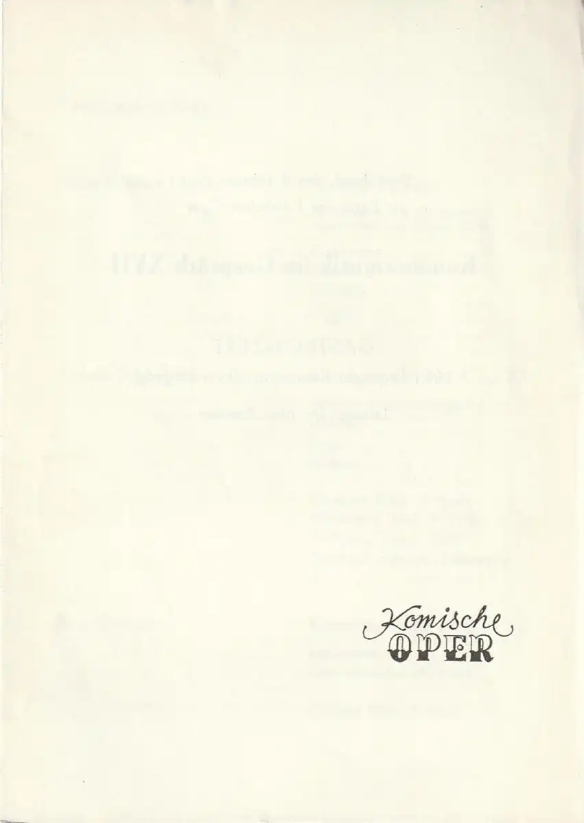 Komische Oper Berlin: Programmheft KAMMERMUSIK IM GESPRÄCH XVII GASTKONZERT 6. Februar 1971 Foyer Komische Oper Spielzeit 1970 / 71.