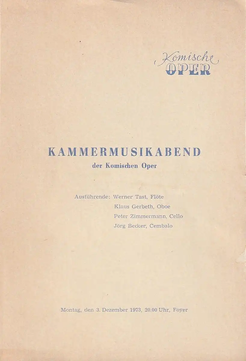 Komische Oper Berlin: Programmheft KAMMERMUSIKABEND DER KOMISCHEN OPER 3. Dezember 1973 Foyer der Komischen Oper Spielzeit 1972 / 73.
