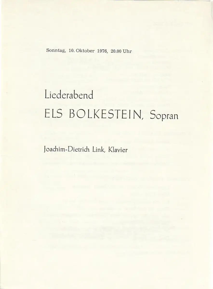 Komische Oper Berlin: Programmheft LIEDERABEND ELS BOLKESTEIN Sopran 10. Oktober 1976 Komische Oper Berlin Spielzeit 1976 / 77.