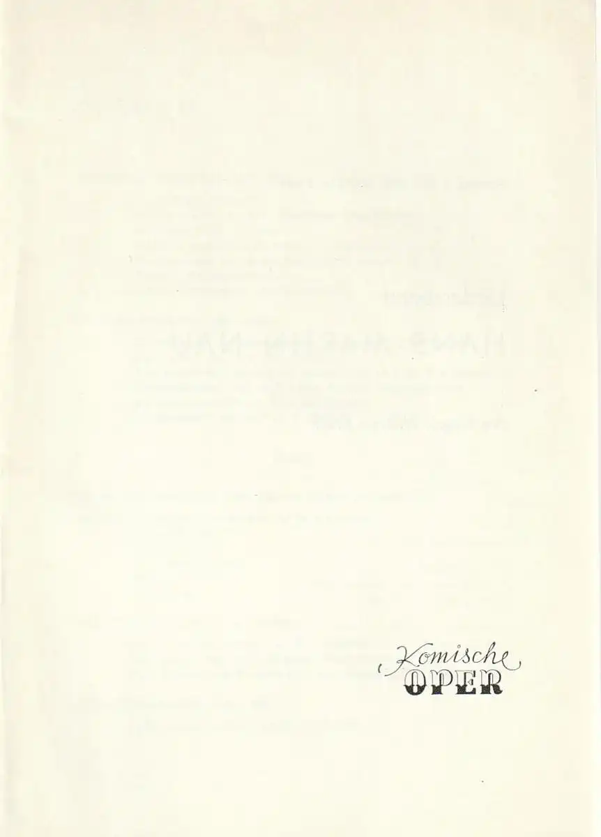 Komische Oper Berlin: Programmheft LIEDERABEND MIT HANS-MARTIN NAU 4. Juni 1978 Foyer Komische Oper Spielzeit 1977 / 78.