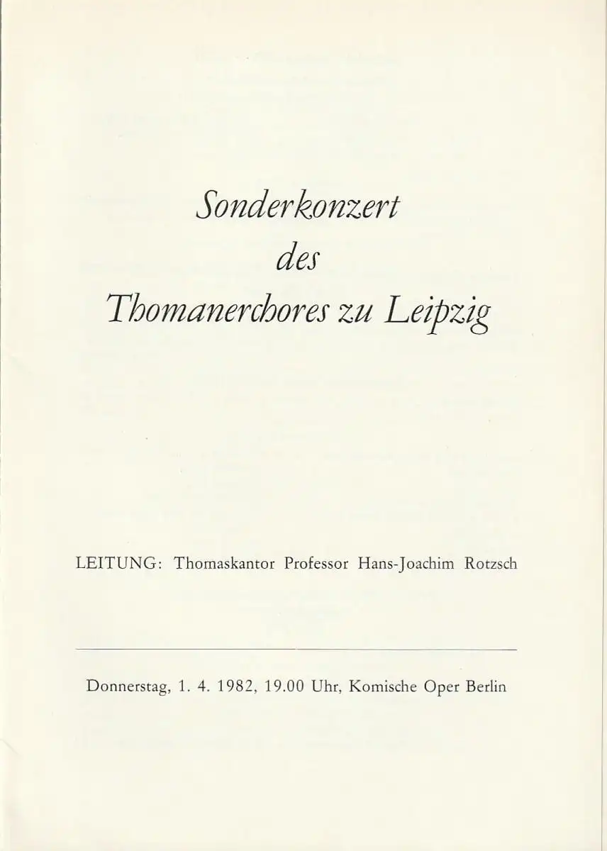 Komische Oper Berlin: Programmheft SONDERKONZERT DES THOMANERCHORES Zu LEIPZIG 1. 4. 1982.