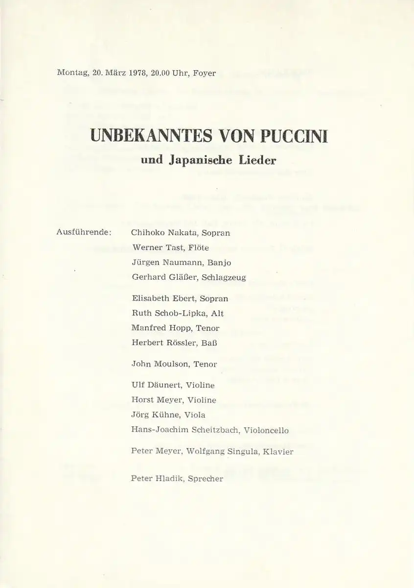Titel: Programmheft UNBEKANNTES VON PUCCINI UND JAPANISCHE LIEDER 20. März 1978 Foyer Komische Oper
